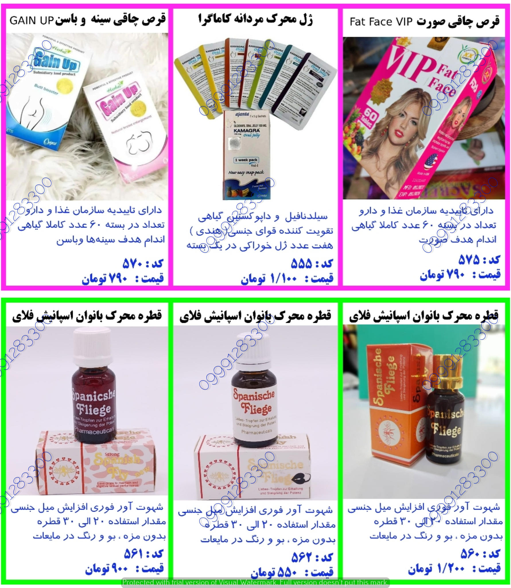 توضیحات قیمت زیر هر یک از محصولات ذکر شده برای ثبت سفارش و توضیحات بیشتر کد محصول و ارسال کنید
